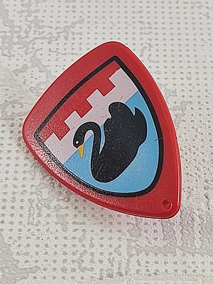 dreieckiges Schutzschild, rot, abgerundete Ecken, schwarzer Schwan auf Wasser