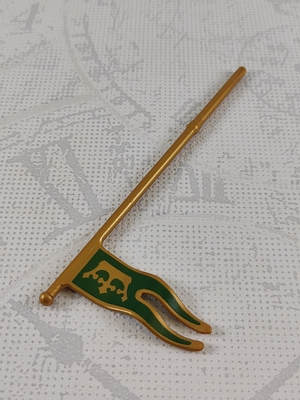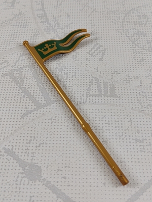 Fahne, Wimpel an goldener Stange gewellt mit Aufdruck Krone gold auf grünem Hintergrund