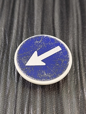 rundes Schild mit weißem Pfeil auf dunkel-blauem Hintergrund