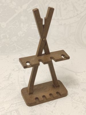Die beiden äußeren Öffnungen an dem mittleren Brett sind nach vorne hin geschlossen, die beiden mittleren offen.